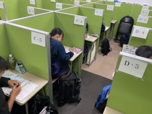 自習教室で補習授業を行ったり、学力判定テストのやり直し!