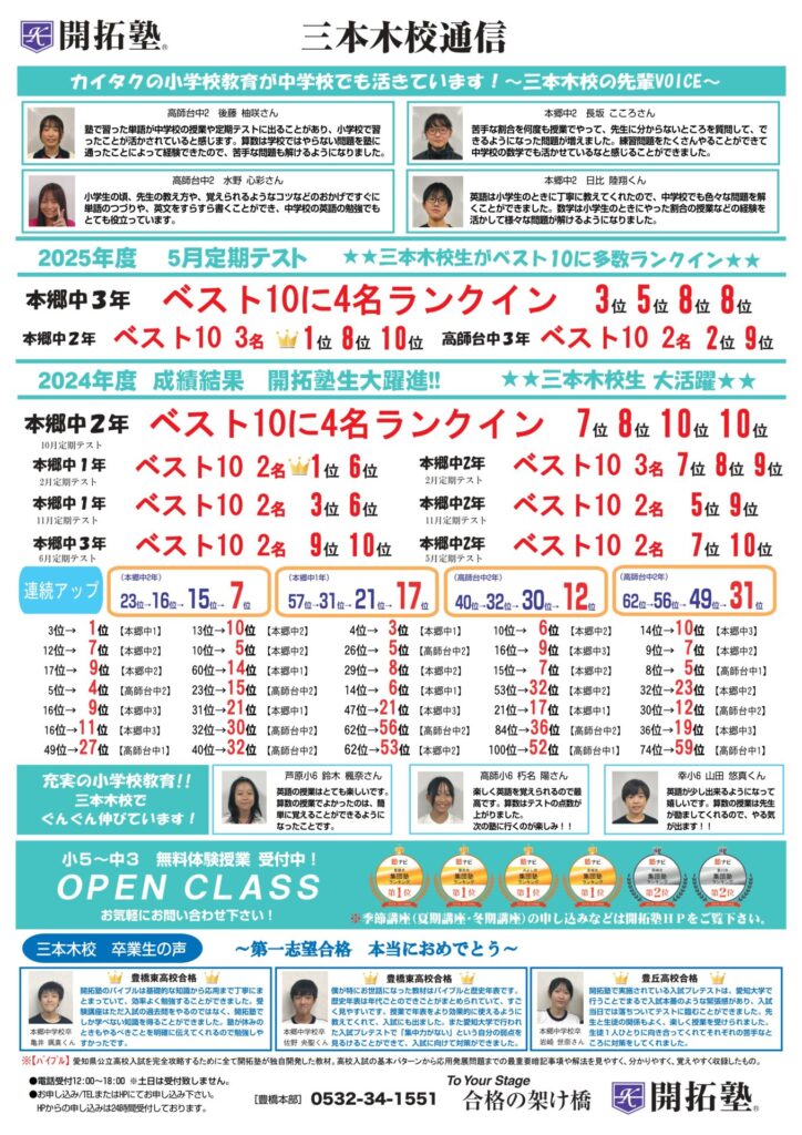 開拓塾 三本木校 『10月・11月広告』 豊橋市 塾