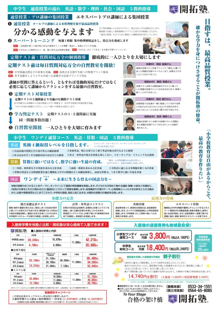 開拓塾 二川校 『10月・11月広告』 豊橋市 塾