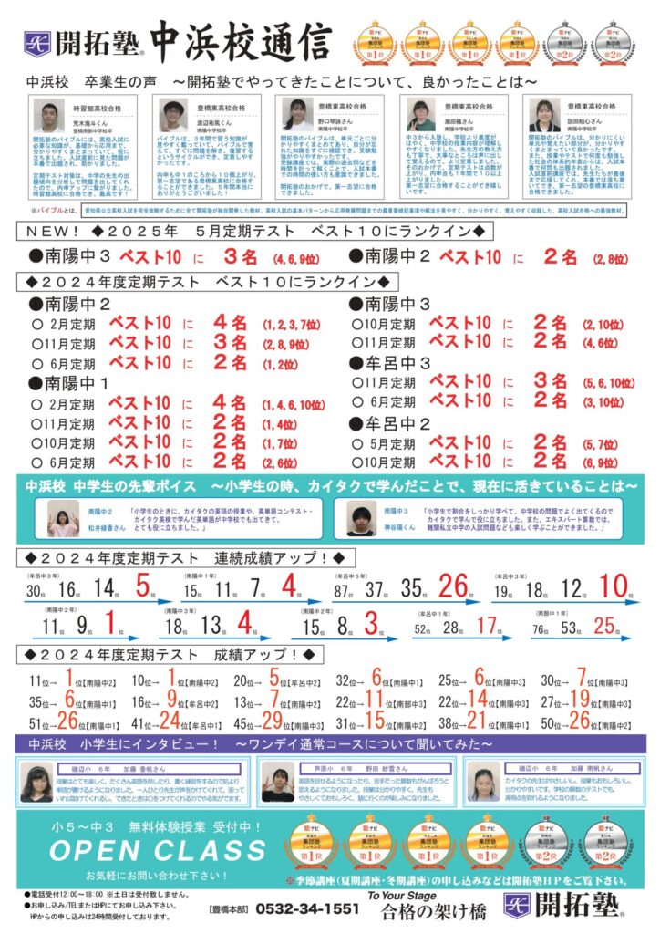 開拓塾 中浜校 『10月・11月広告』 豊橋市 塾