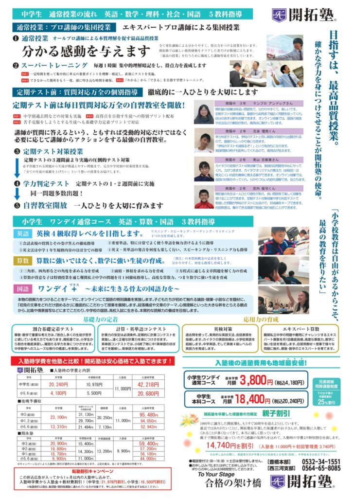開拓塾 豊橋本校 『10月・11月広告』 豊橋市 塾