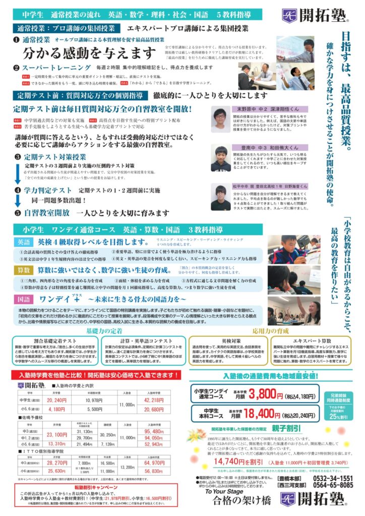 開拓塾 岡崎校 『10月・11月広告』 岡崎市 塾