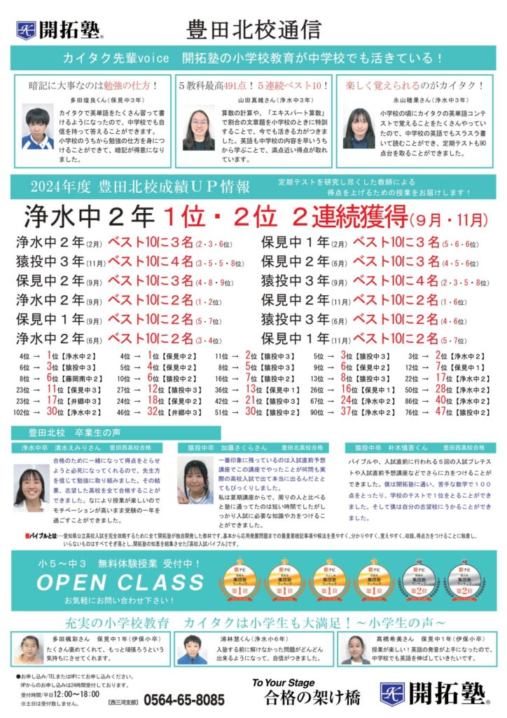 開拓塾 豊田北校 『10月・11月広告』 豊田市 塾
