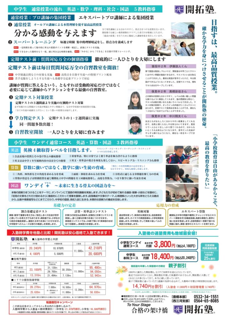 開拓塾 南安城校 『10月・11月広告』 安城市 塾