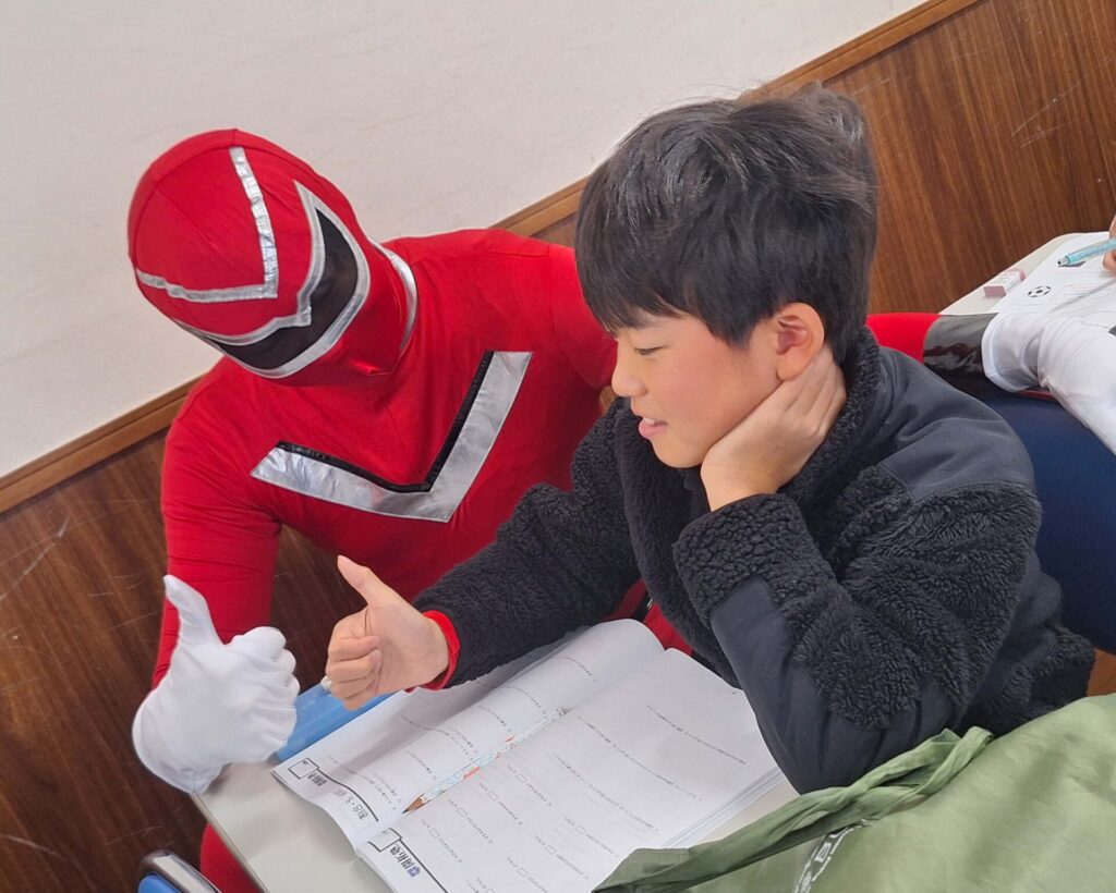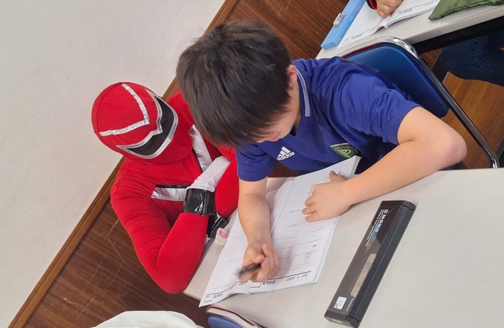算数の正解を喜ぶヒーロー!